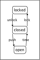 Say we want to represent a door with an automatic door closer. If this kind of door is locked, you can unlock it. While this doesn’t open the door per se, it is now possible to do so. That is, an unlocked door is closed and pushing at the door opens it. Once you have passed through the door and you let go, the automatic door closer takes over and closes the door again. Of course, at this point you could lock it again.
