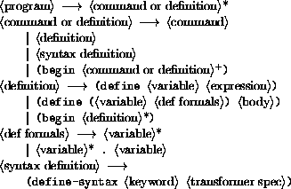 This section provides a formal syntax for Scheme written in an extended BNF.