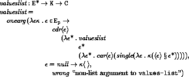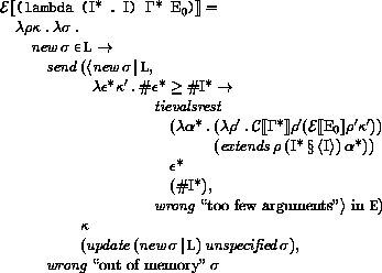 This section provides a formal denotational semantics for the primitive expressions of Scheme and selected built-in procedures. The concepts and notation used here are described in [29]; the notation is summarized below: