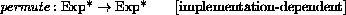 The order of evaluation within a call is unspecified. We mimic that here by applying arbitrary permutations permute and unpermute, which must be inverses, to the arguments in a call before and after they are evaluated. This is not quite right since it suggests, incorrectly, that the order of evaluation is constant throughout a program (for any given number of arguments), but it is a closer approximation to the intended semantics than a left-to-right evaluation would be.